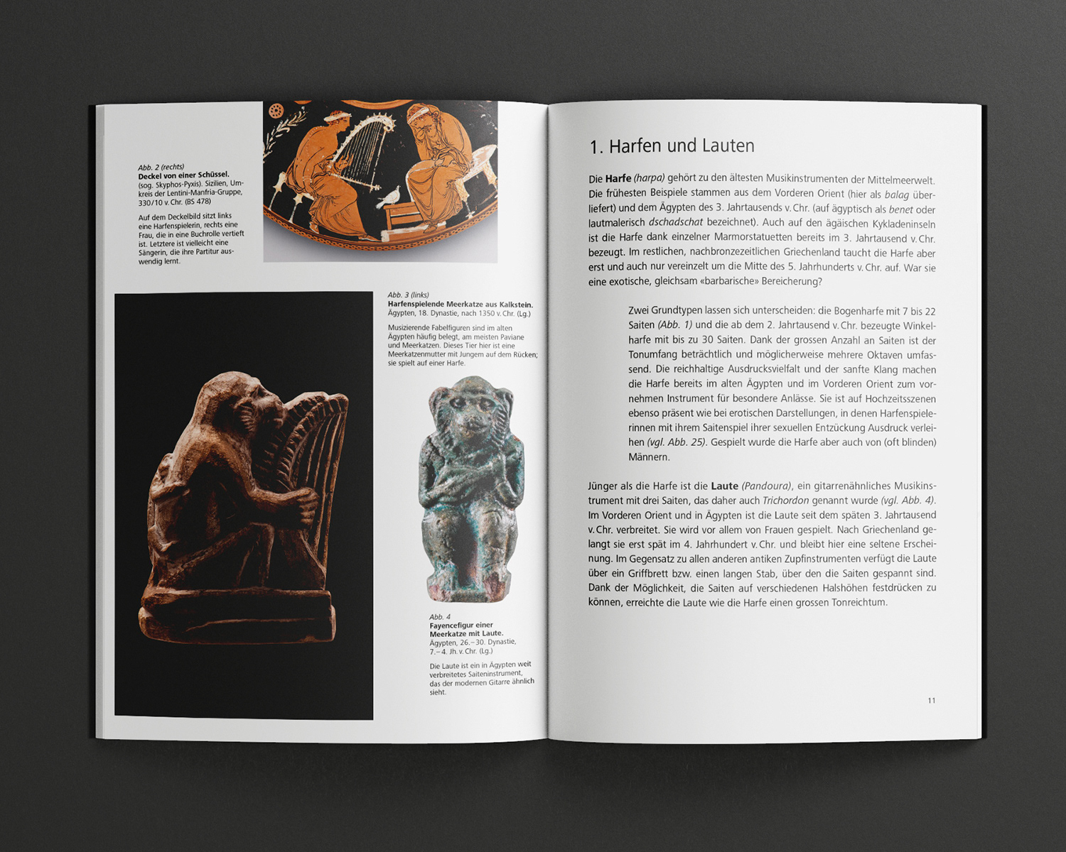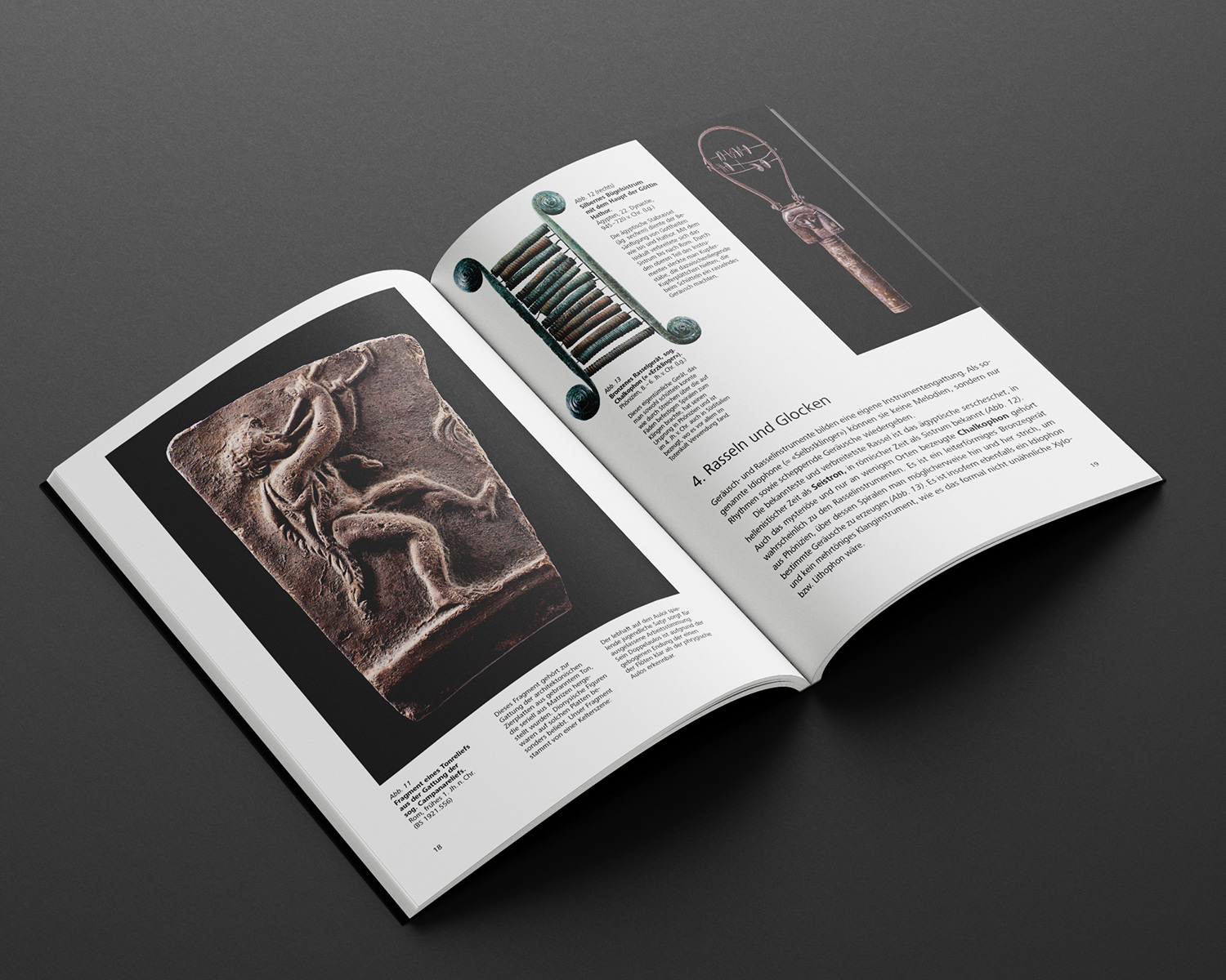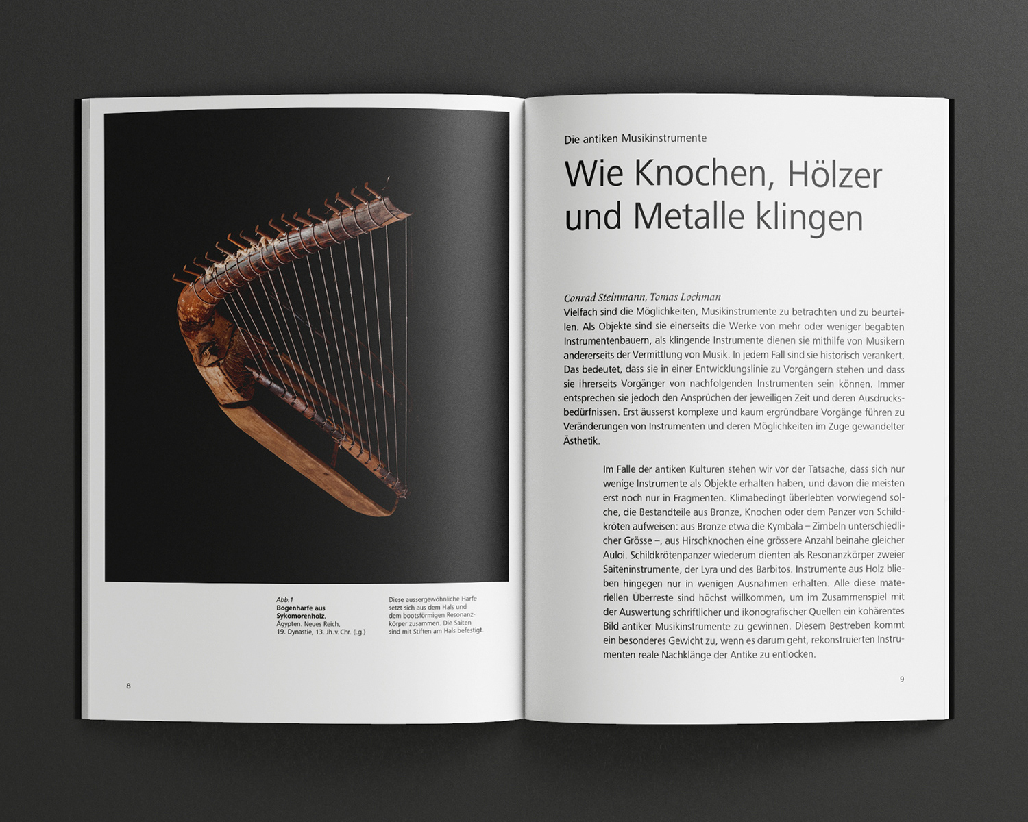 Das Antikenmuseum Basel und Sammlung Ludwig präsentiert 5000 Jahre Kultur aus dem Mittelmeerraum. Für die Sonderausstellung «Von Harmonie und Ekstase. Musik in den frühen Kulturen» entstand eine umfassende 116-seitige Begleitpublikation. Der Fokus lag auf klarer inhaltlicher Struktur, wissenschaftlicher Vermittlung und einer zeitgemässen gestalterischen Umsetzung, die Texte und Bildmaterial lebendig miteinander verknüpft