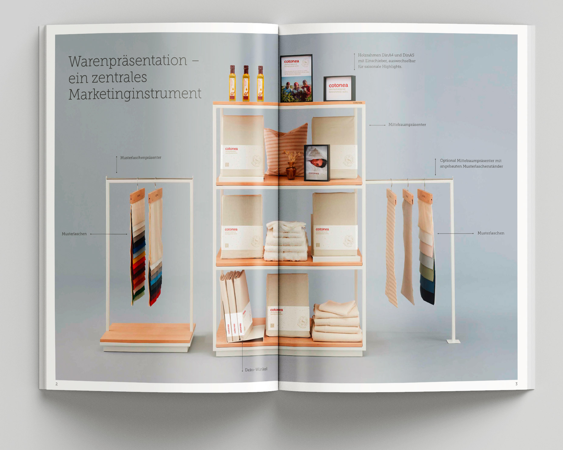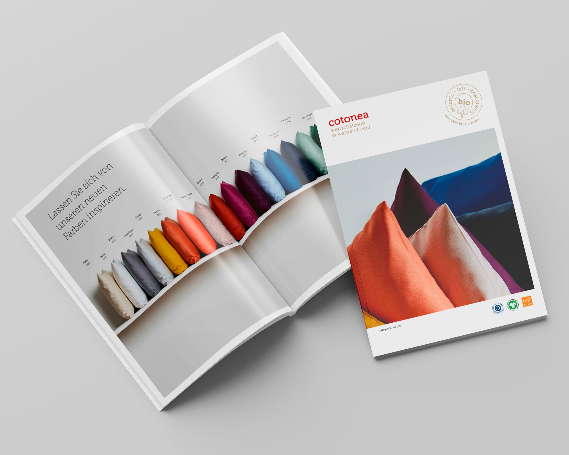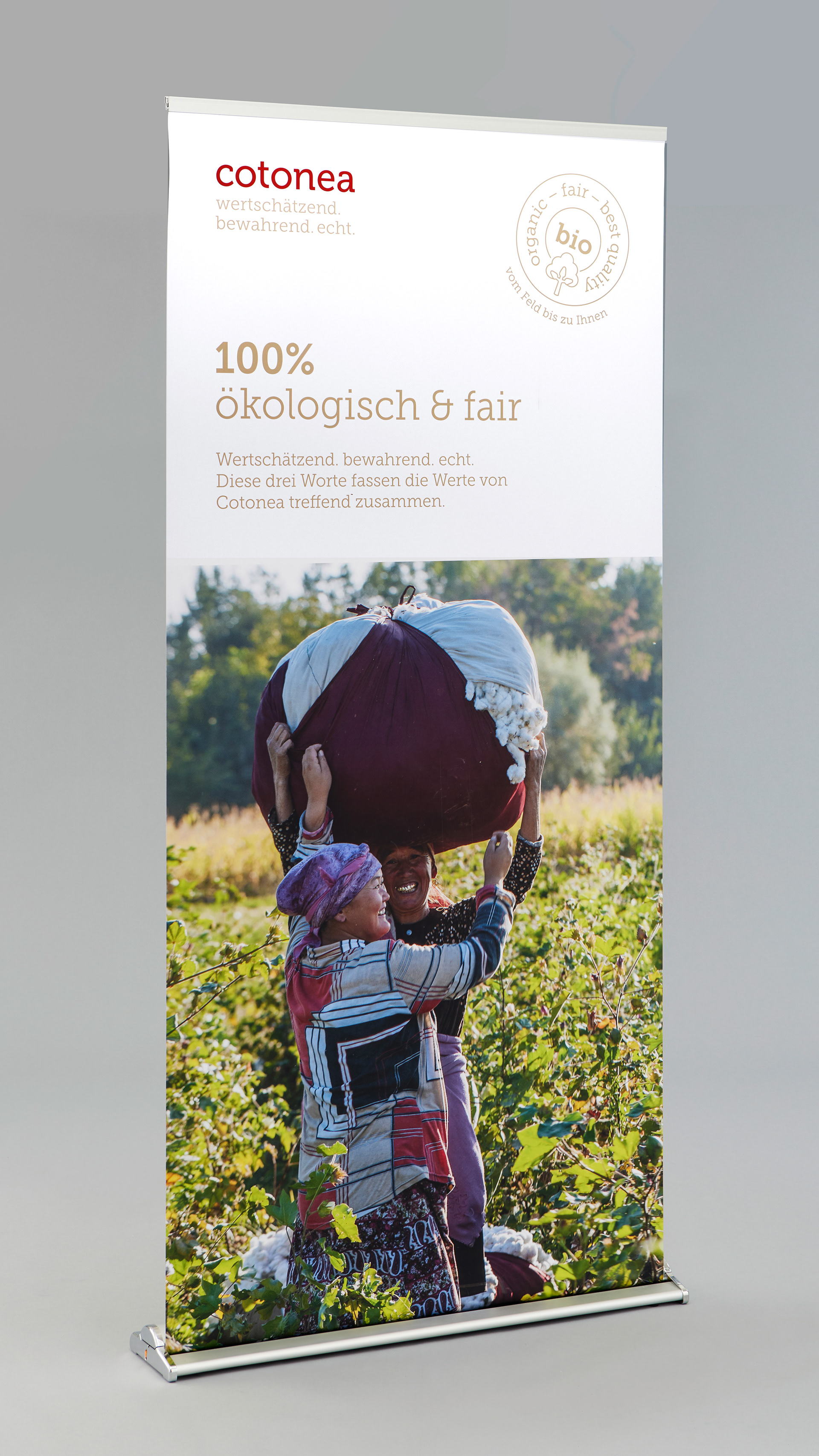Cotonea steht für Bio-Textilien mit einem klaren Bekenntnis zu Nachhaltigkeit, Ökologie und Fairness. Im Rahmen des Rebrandings wurden das bestehende Logo sowie die Typografie beibehalten und durch die Entwicklung eines neuen Claims ergänzt. Die Markenwerte wurden visuell geschärft und konsequent in sämtlichen Printmassnahmen umgesetzt – von Verpackungen und Broschüren über POS-Materialien bis hin zu Messeständen und Leitsystemen.