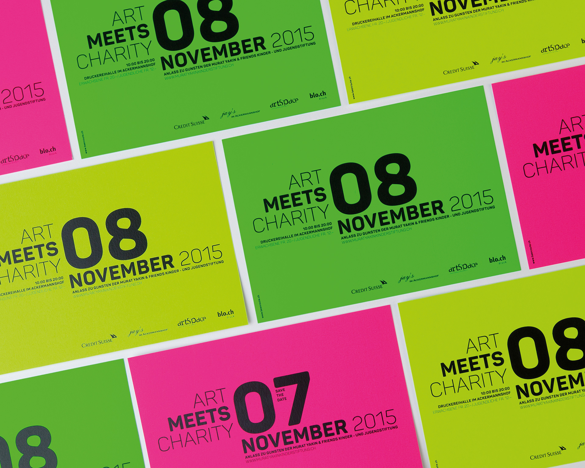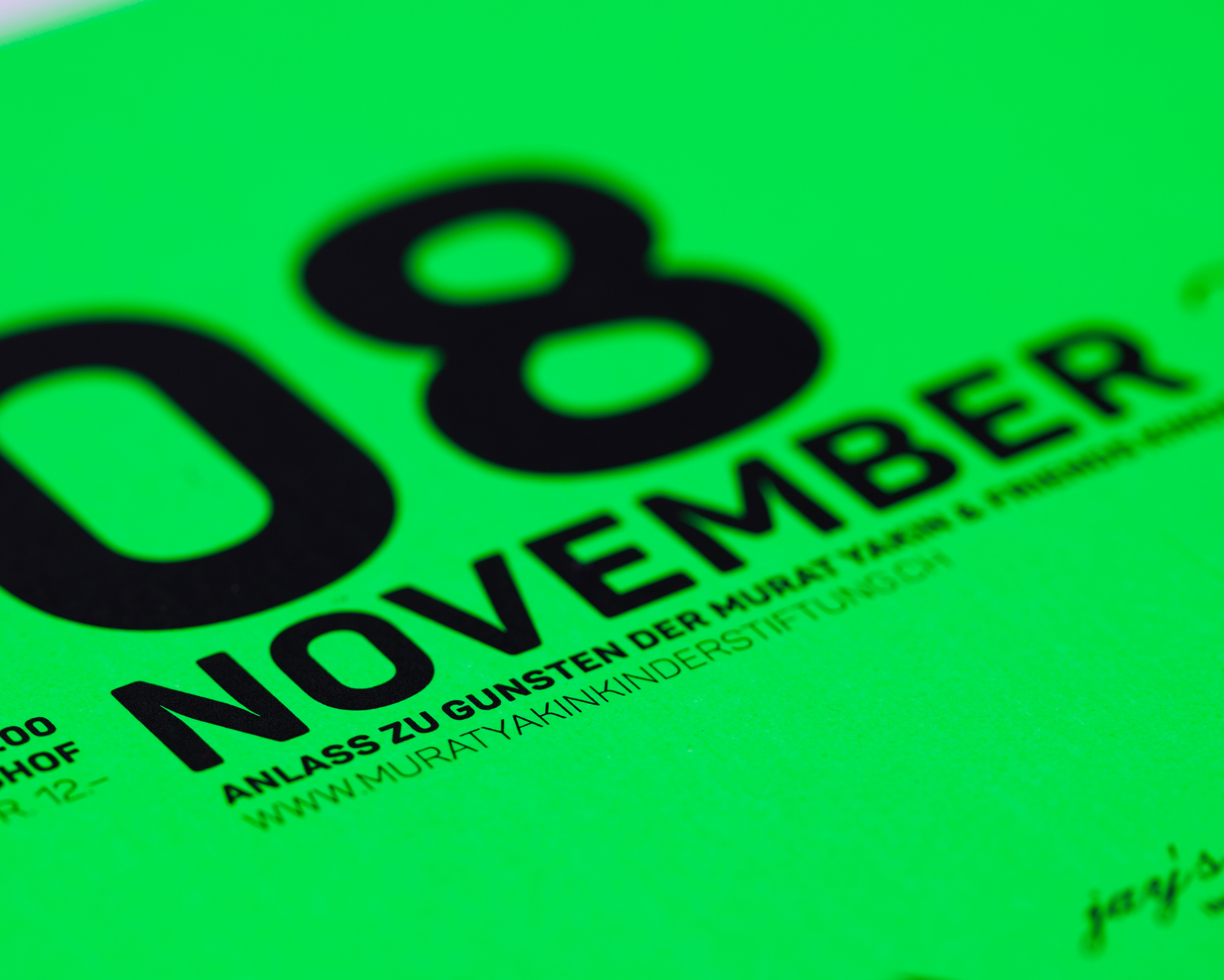 Für das zweitägige Charity-Event der Murat Yakin & Friends Kinderstiftung wurde ein durchgängiges visuelles Konzept entwickelt, das den Gesamtauftritt über Print-Werbemittel wie Plakate, Flyer und Einladungen hinweg prägt. Zur klaren Differenzierung der einzelnen Programmpunkte – VIP-Anlass, After-Party und Brunch – wurden die Werbemittel auf unterschiedlich neonfarbigen Papieren gestaltet und einfarbig in Schwarz gedruckt, wodurch ein moderner, einprägsamer Look entstand.